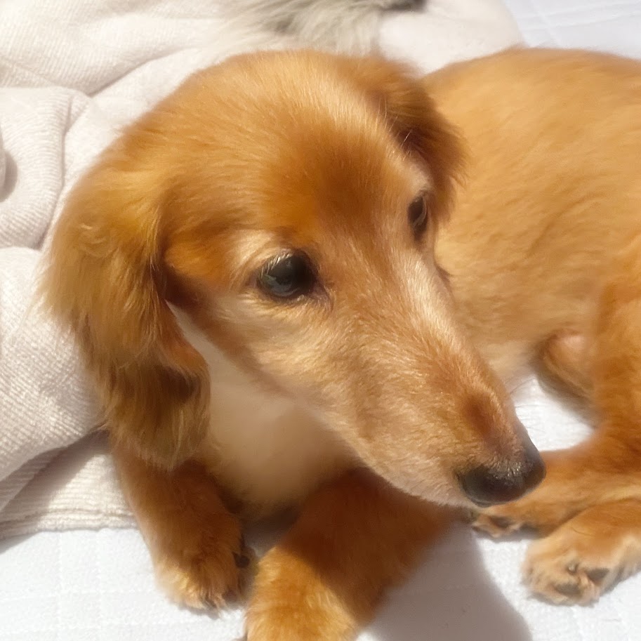 犬種はミニチュアダックスフント パイボールド、12歳。人間にすると60代後半のおじいちゃん。