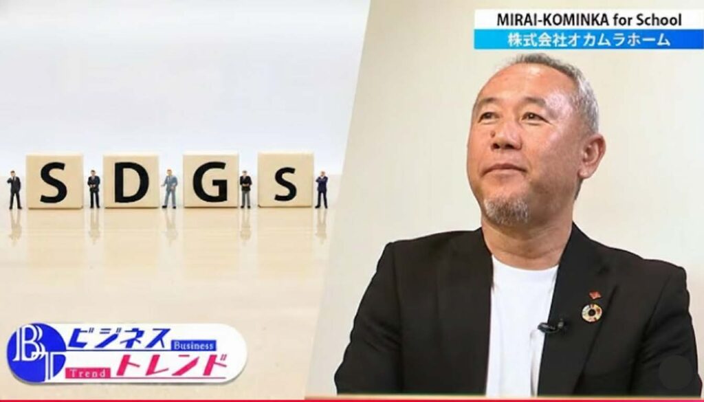 この度、千葉テレビのビジネス情報番組「ビジネストレンド」にて、オカムラホームが推進するSDGsの取り組みについて取材・放送いただきました。