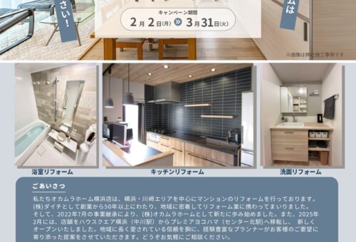 2023年、都内や横浜地区で長年にわたり数多くのリフォームを提供してきました株式会社ダイチの事業継承を行い、 オカムラホームのリフォームは