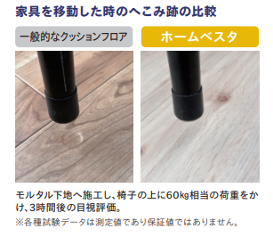 1.高品質(日本製) 適度な硬さがあるため、床の傷つきにも強く、家具の後が残りにくい。傷や汚れが付いた場合、一枚単位で交換可能。