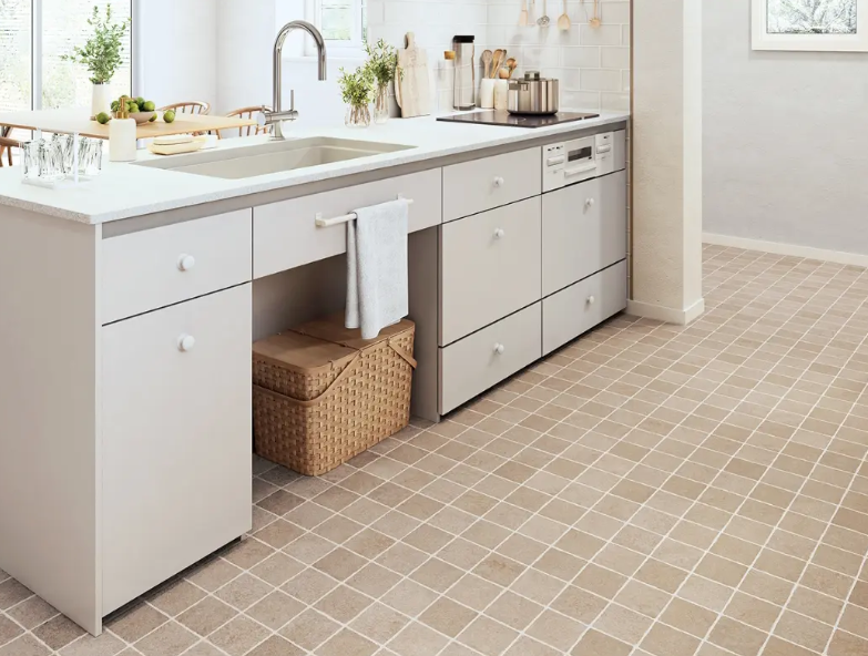 キッチンの床が汚れていると風水的にも良くありません。清掃性に優れた塩化ビニール製のクッションフロアなら日々のお手入れも簡単で清潔を保ちやすくおすすめです。