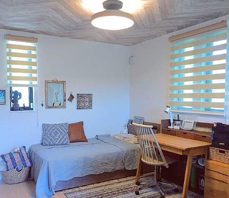 ・ロールカーテンは昼は巻き上げて陽の気を取り入れ、夜は下ろして気の流れを穏やかに