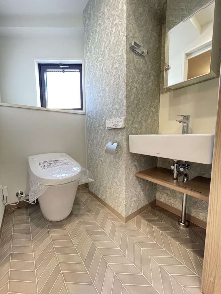 トイレはタンクレス便器、洗面は造作しておしゃれな空間になりました