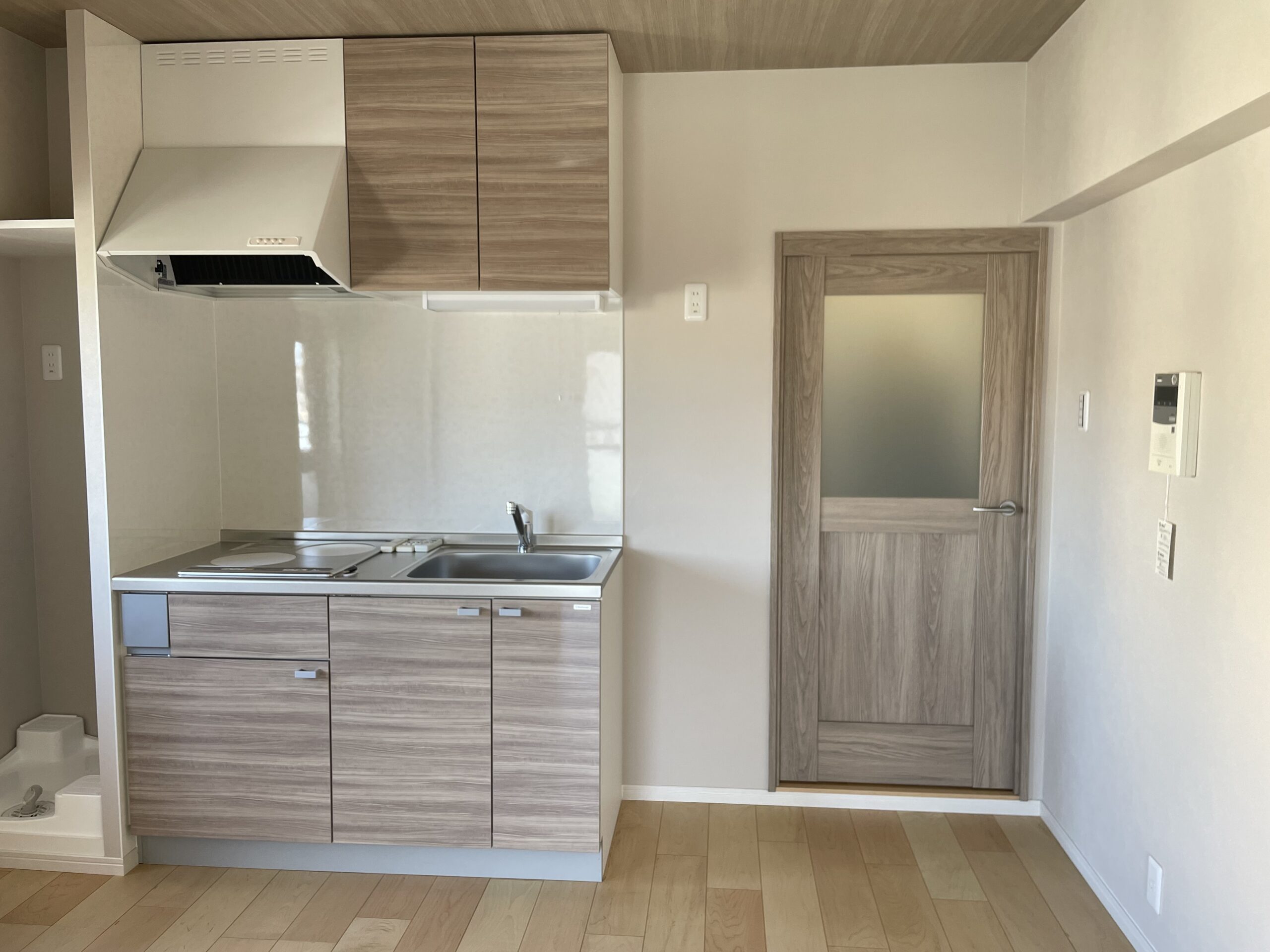 防水パンはキッチンをサイズダウンしてキッチン左側に設置