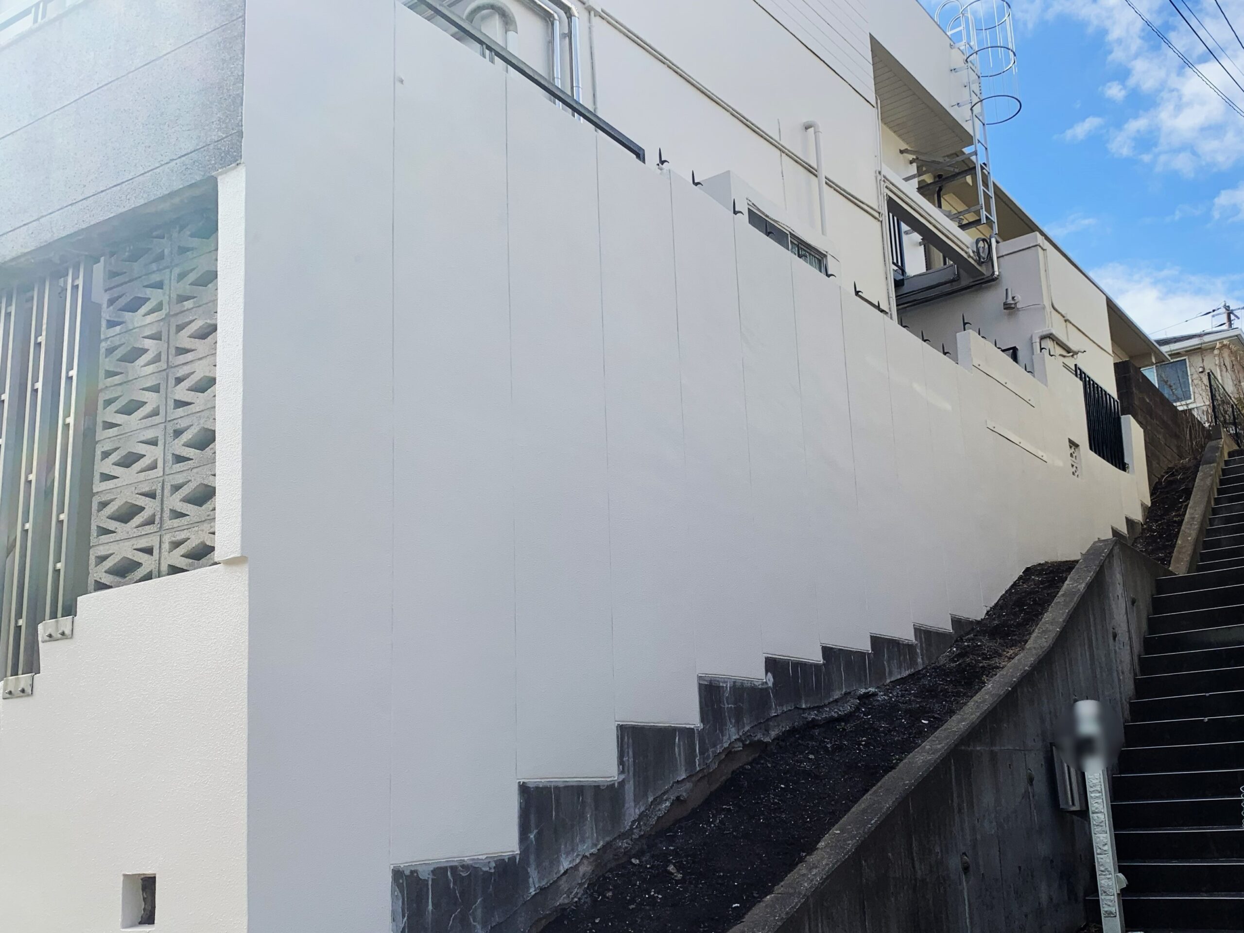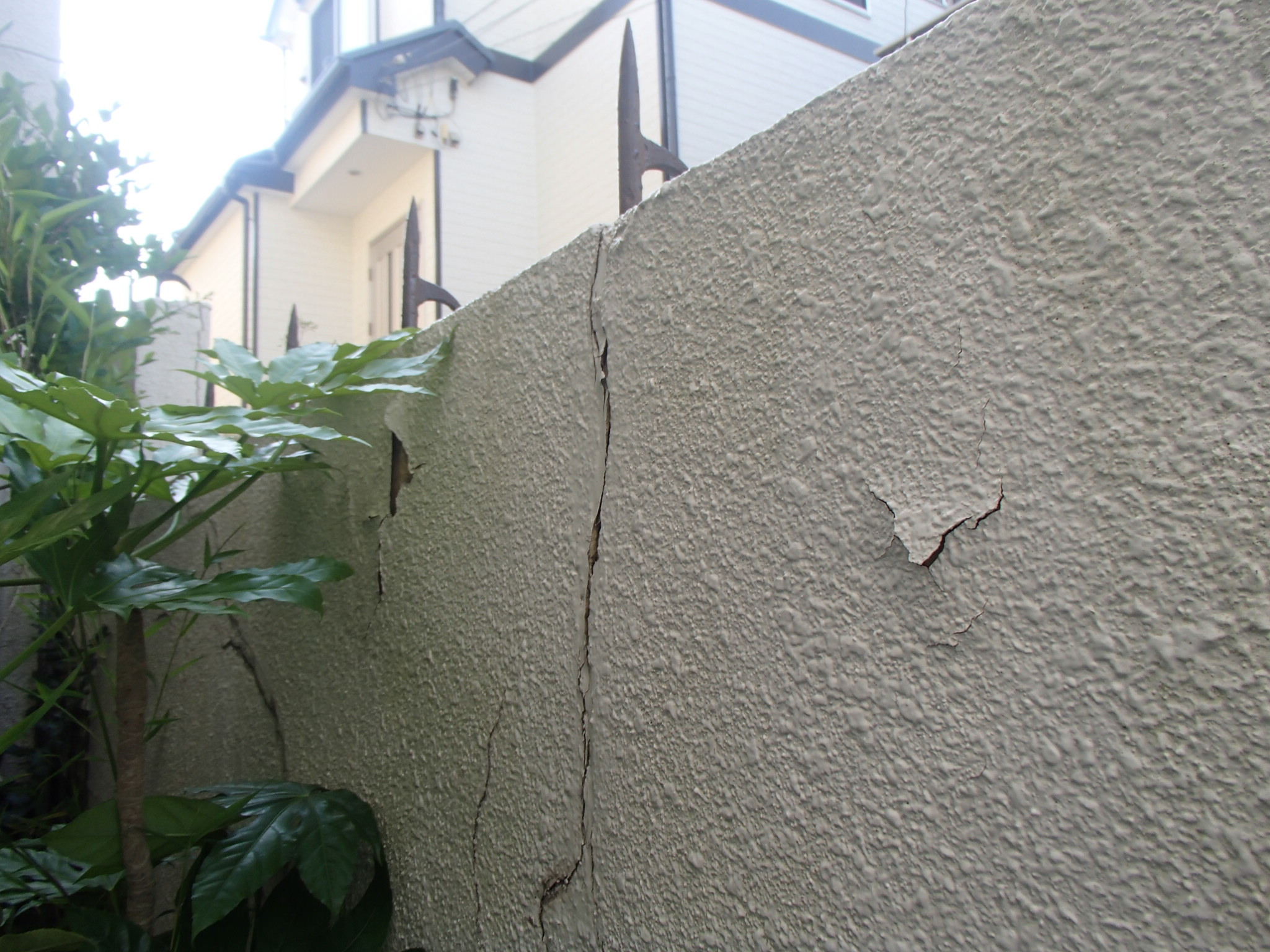 合わせて外部塀の擁壁のひび割れも補修しました。