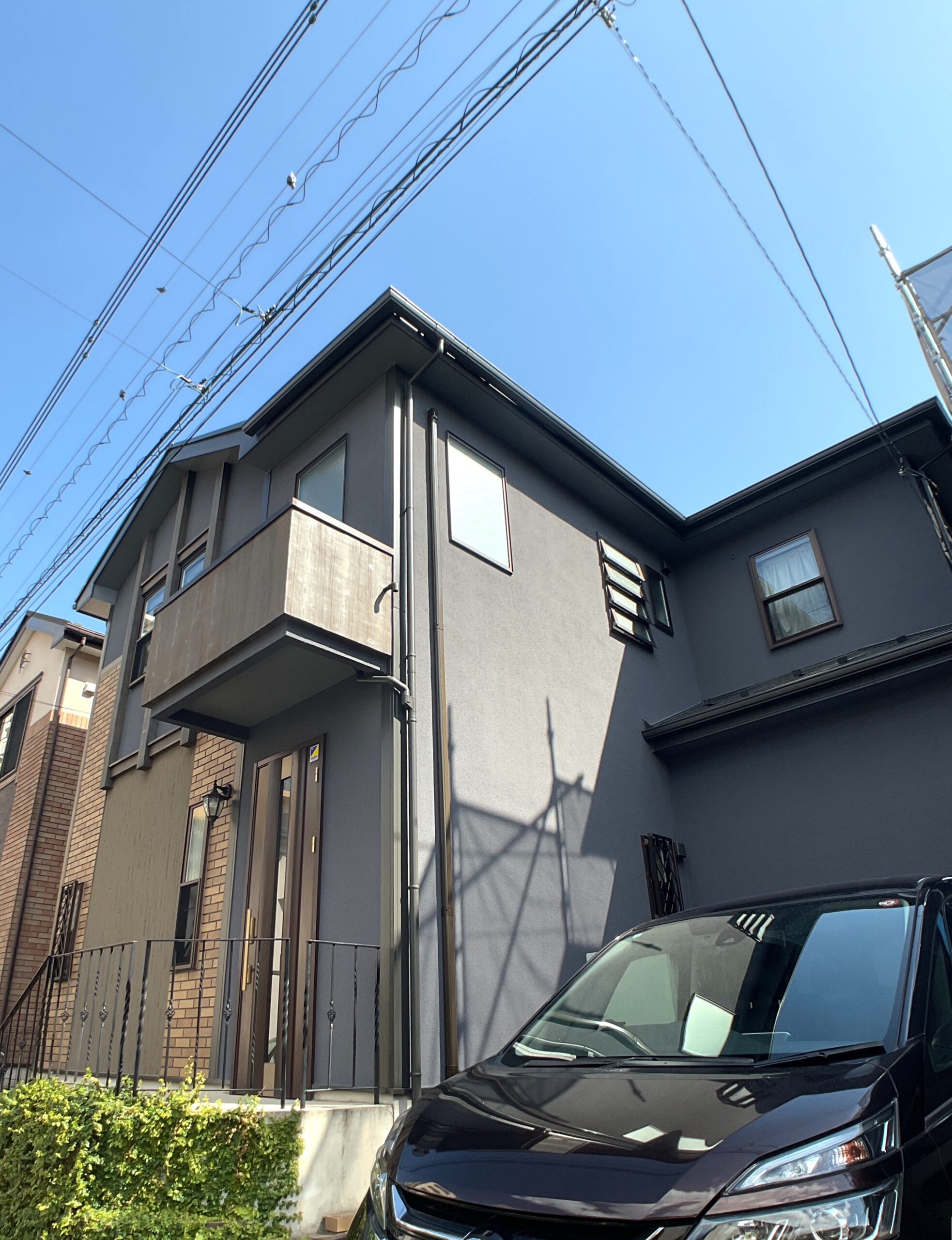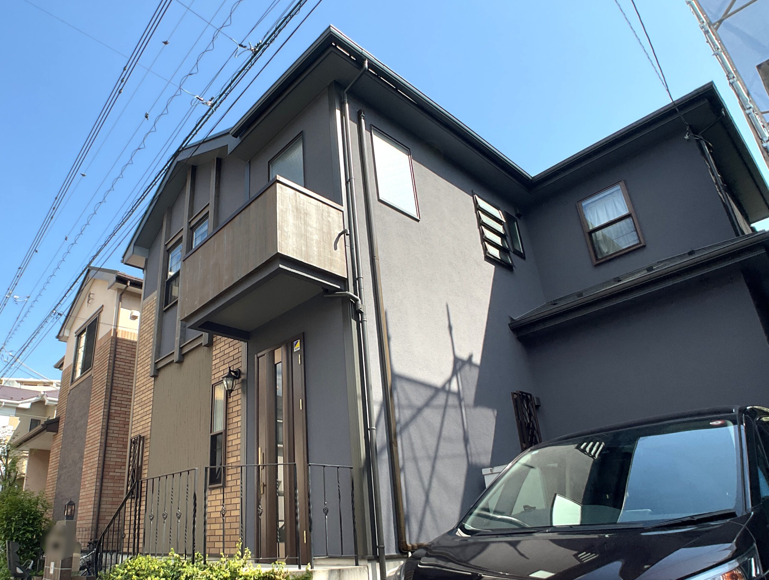 これまで屋根・外壁のメンテナンスを10年毎にしっかり行って頂いてきたお客様で、今回もシックな雰囲気の目を引く外観になりました。