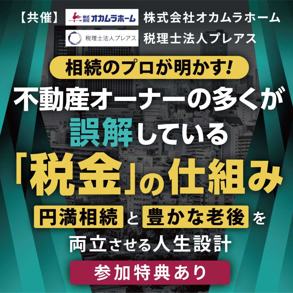 不動産オーナーの多くが誤解している「税金」の仕組みをテーマに、株式会社オカムラホームと税理士法人プレアスが共催でセミナーを開催いたします。