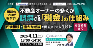 【無料オンラインセミナー】4/11(土) 不動産オーナーの多くが誤解している「税金」の仕組み新着!!